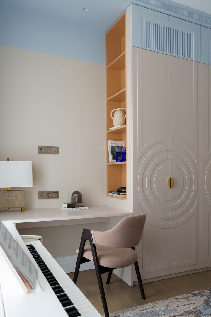 Общее решение, стилистику и цветовую гамму проекта авторская группа считает своей удачей. Дело в том, что заказчик объекта уже вторично обратился к команде Елены Потемкиной с просьбой выполнить интерьер квартиры именно в таком стиле. Первым опытом стал инвестиционный объект, который настолько понравился заказчикам, что они решили повторить решение в личном жилье. И задумка удачно воплотилась в жизнь.