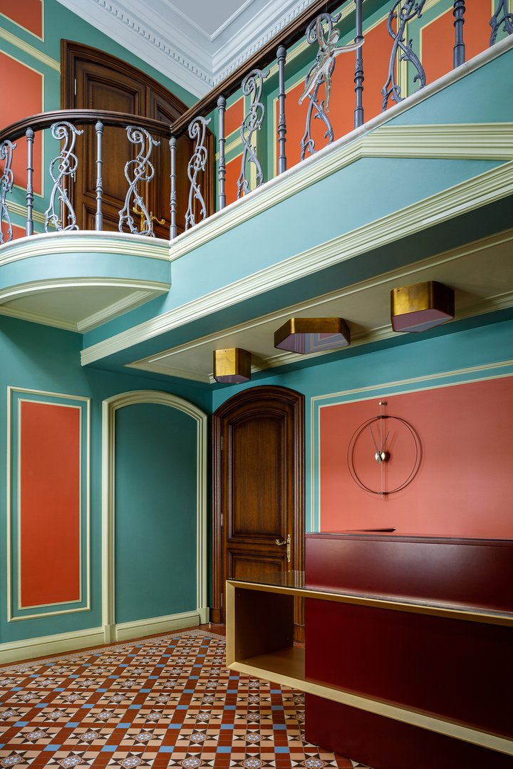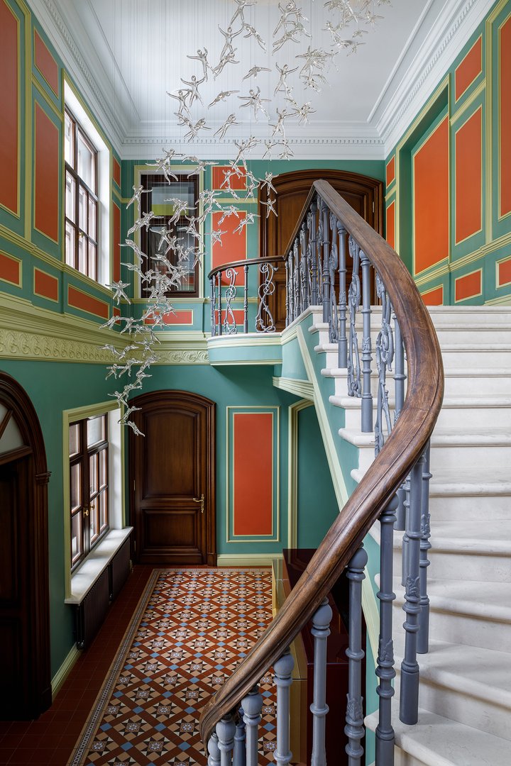 Авторы проекта скрупулезно восстанавливали исторический облик помещений. Сегодня здесь можно видеть оригинальные дубовые полы, гипсовую лепнину и двери — все, как было на момент постройки особняка. Интересная деталь — во время работ, расчищая стены, под обоями мастера нашли газету 1789 года!