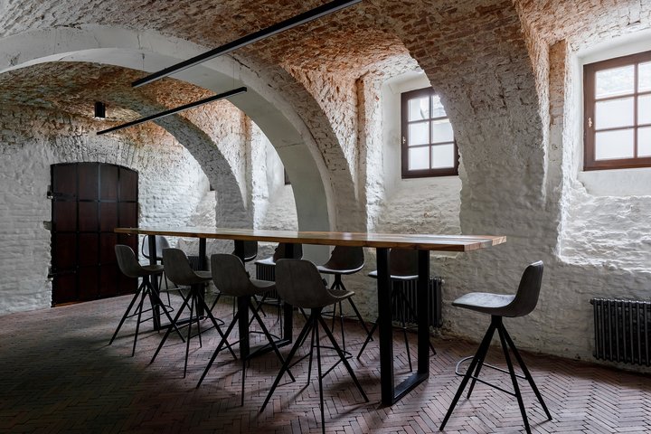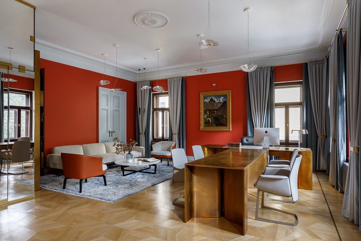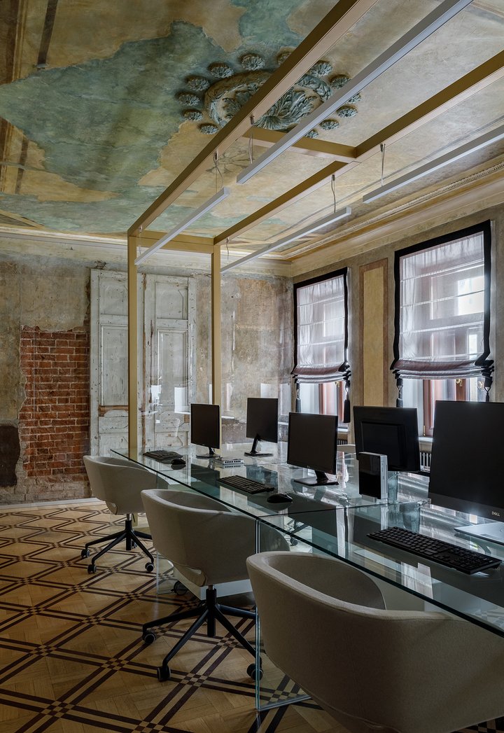 «Меня пригласили в связи с тем, что мое бюро специализируется на работе с историческими усадьбами и объектами культурного наследия, — пояснила Марианна Петренко. — Все внутренние стены и планировку мы сохранили. Но каждое историческое помещение наполнили новой функцией, будь то переговорная, рабочие кабинеты, зона ресепшен и т.д.».